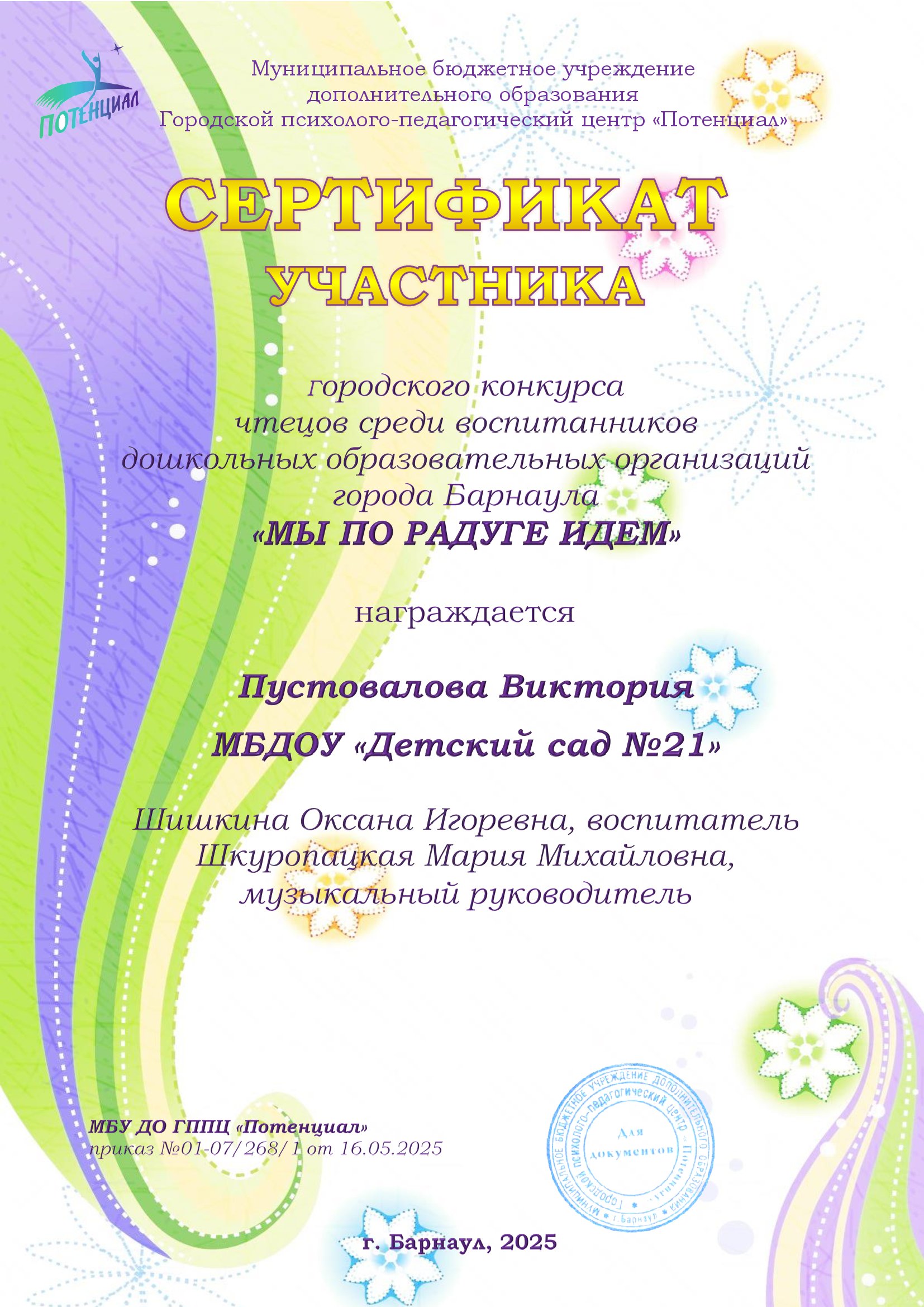 Шкуропацкая Мария Михайловна, музыкальный руководитель.