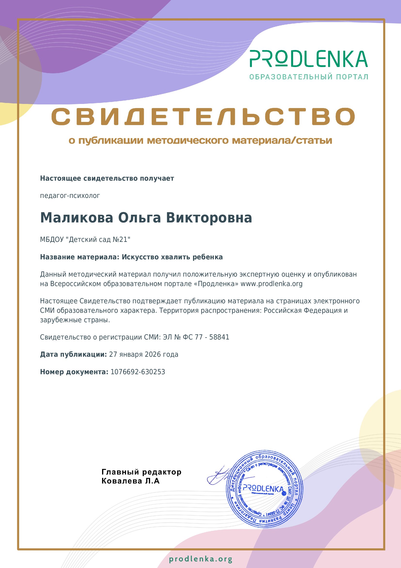 Маликова О. В., педагог-психолог Кристина Сонина31 января 202518 февраля 2026 Новости Комментариев нет Маликова О. В., педагог-психолог ← Алексеева А. С., воспитатель Следующая запись → Добавить комментарий Отменить ответ Ваш e-mail не будет опубликован. Обязательные поля помечены *Комментарий Имя * E-mail * Сайт